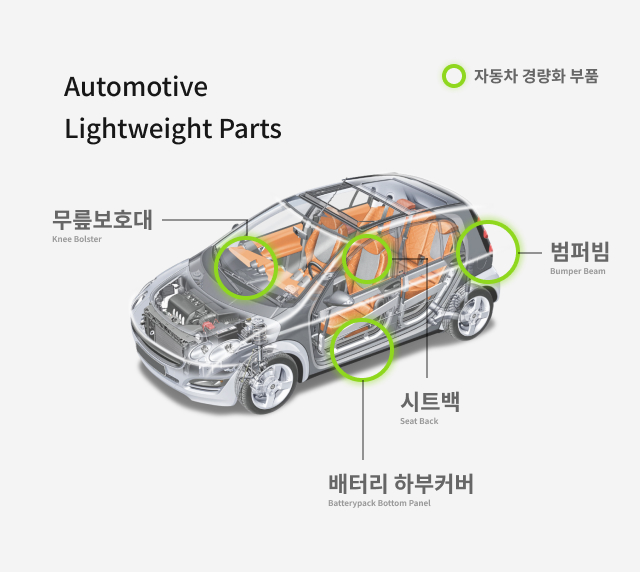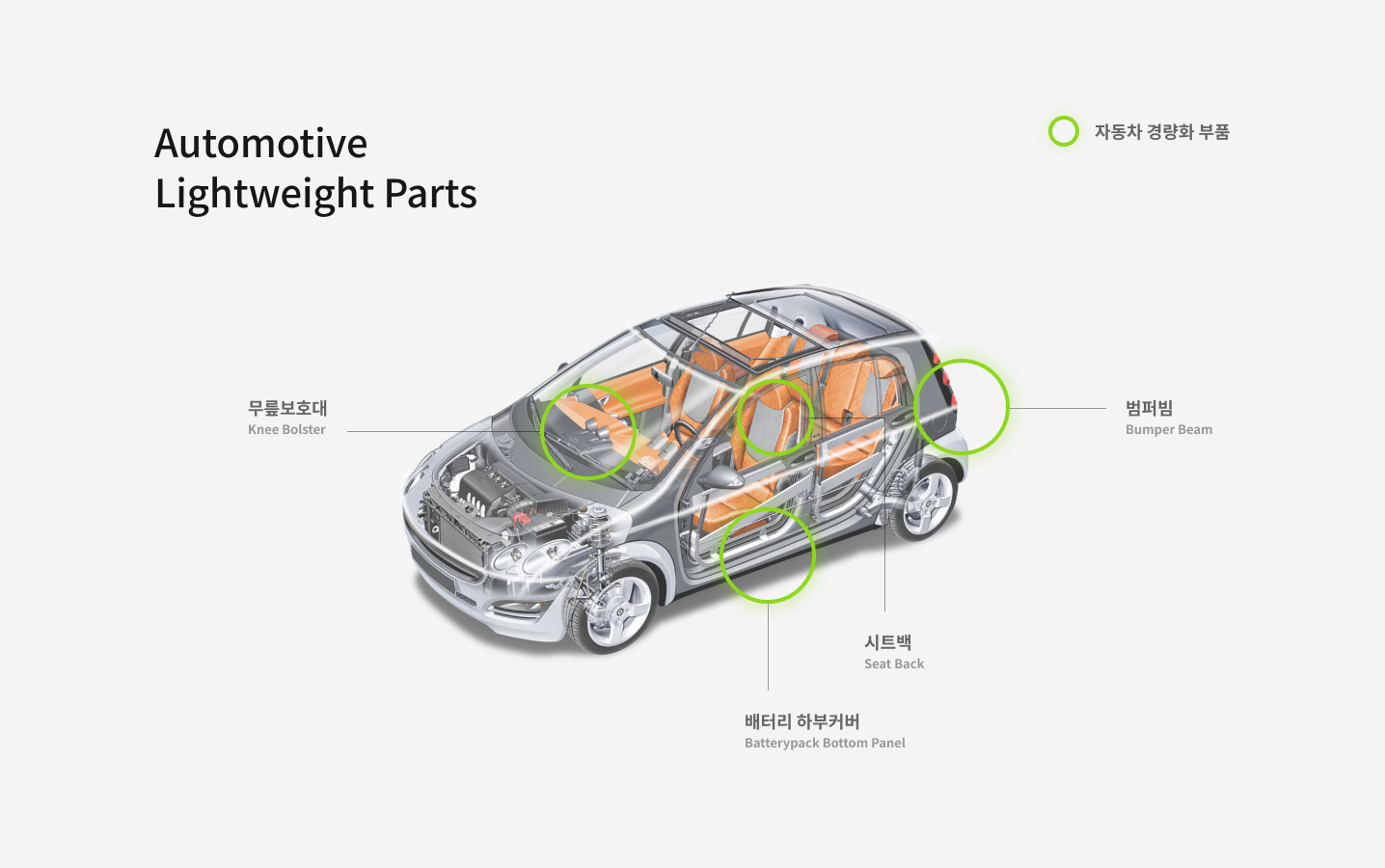 - Polypropylene 수지에 연속 섬유가 보강된 열가소성 복합 소재