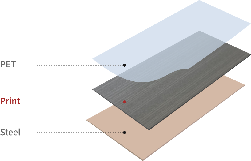 UV 엠보 공법을 이용해 금속 입체감을 극대화한 Premium 필름으로 다양한 컬러와 패턴 구현이 가능합니다.