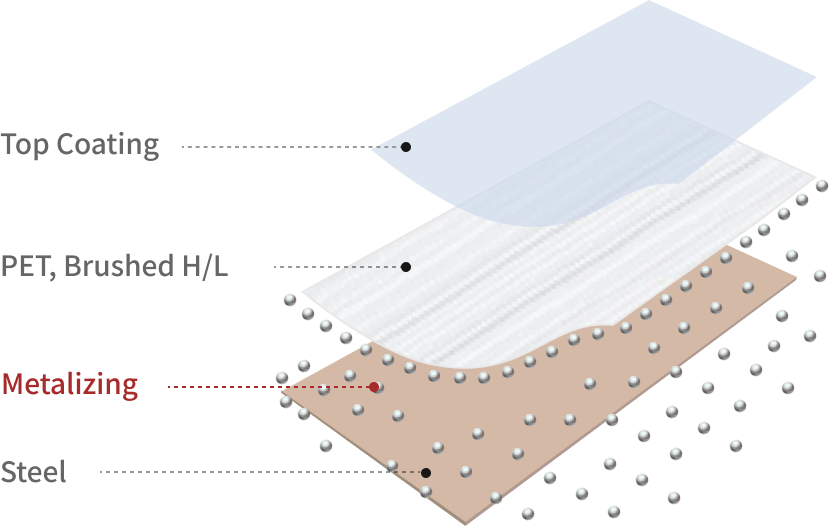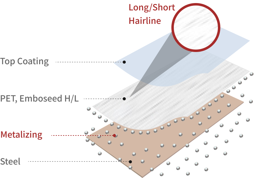 다양한 헤어라인과 금속 증착을 통해 Metal looking을 표현한 필름입니다.