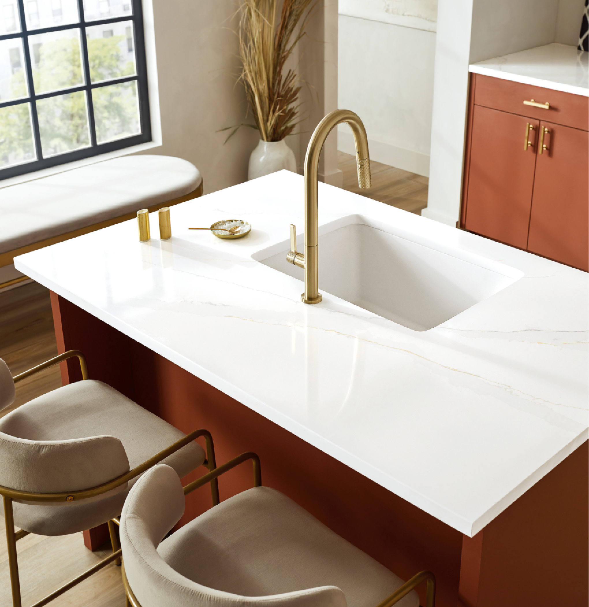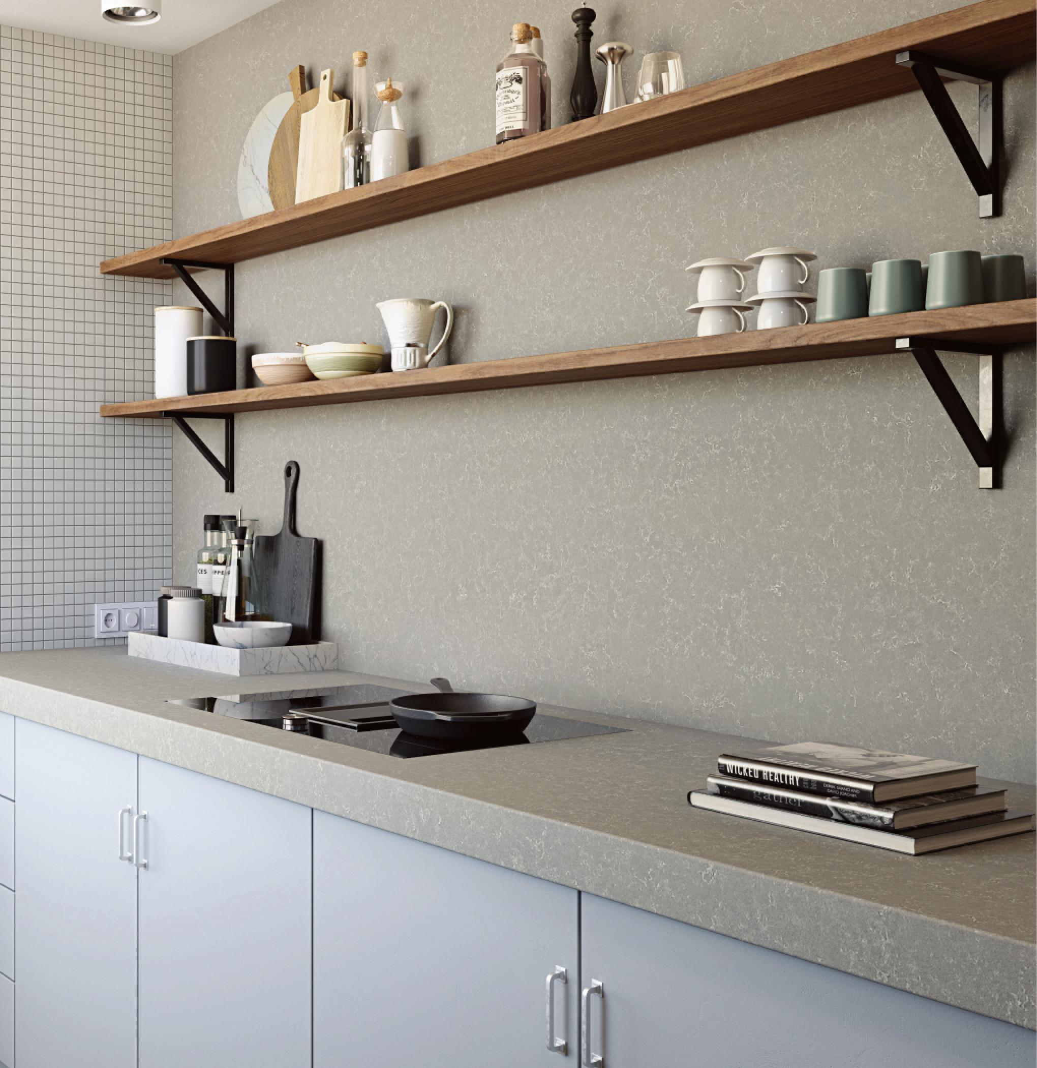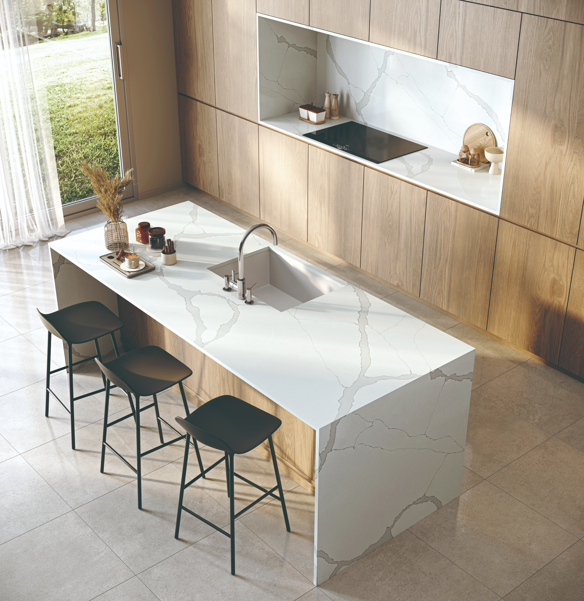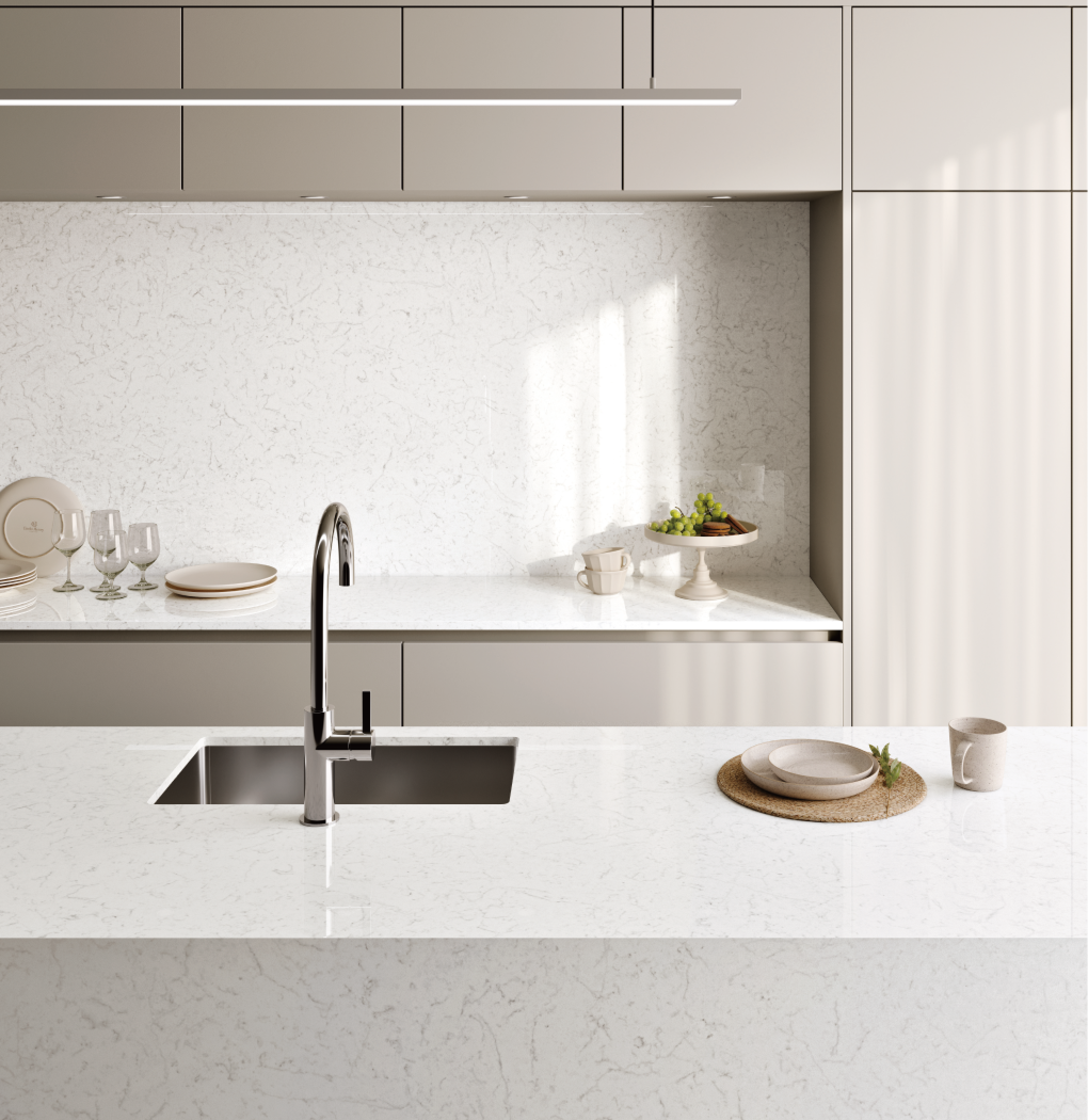 천연석 대비 수분 흡수율이 낮아 생활 오염에 강해 매우 위생적이며, 청소가 쉽고 얼룩이 적어 오랫동안 사용할 수 있습니다.